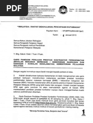 Borang Kaji Selidik Kepuasan Pelanggan Kontrak Perkhidmatan Bekalan Makanan Bermasak