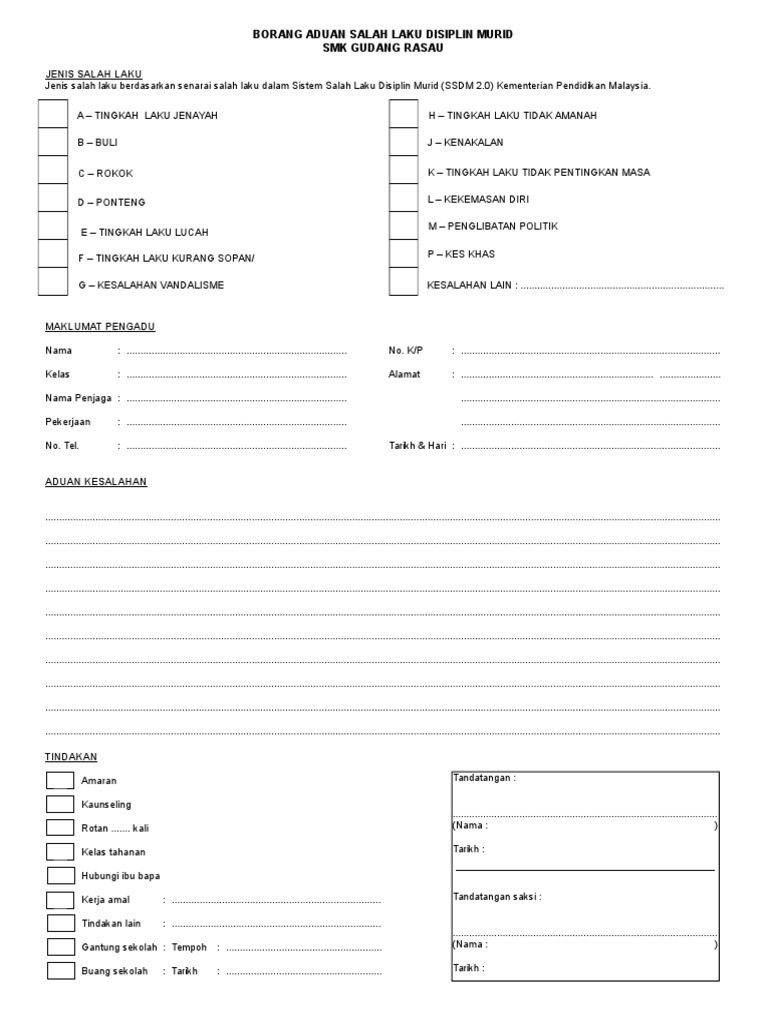 Borang Rekod Kesalahan Disiplin Murid Sk Bur