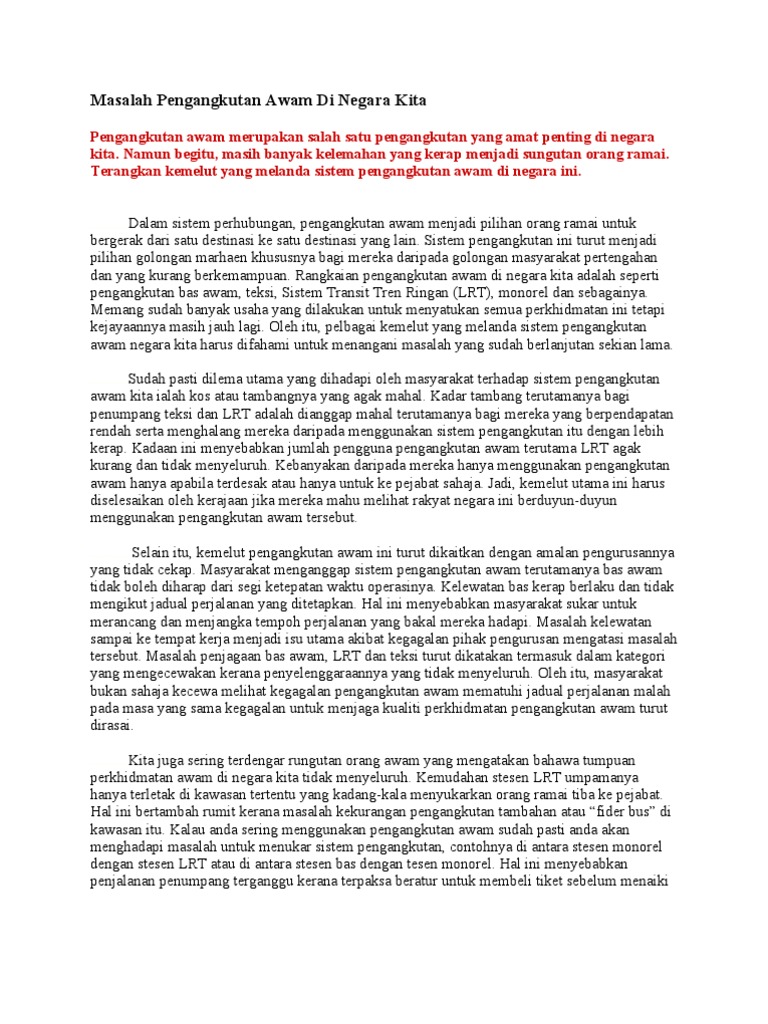 Masalah Sistem Pengangkutan Awam Di Nega 1 Docx Masalah Sistem Pengangkutan Awam Di Negara Kita Dan Cara Mengatasinya Rangkaian Pengangkutan Awam Di Course Hero