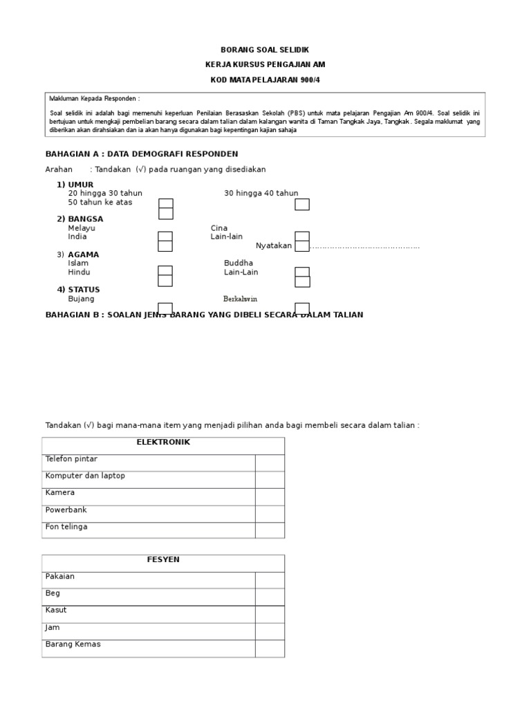 Doc Borang Soal Selidik Kerja Kursus Pengajian Am Kod Mata Pelajaran 900 4 Nurul Farhana Academia Edu