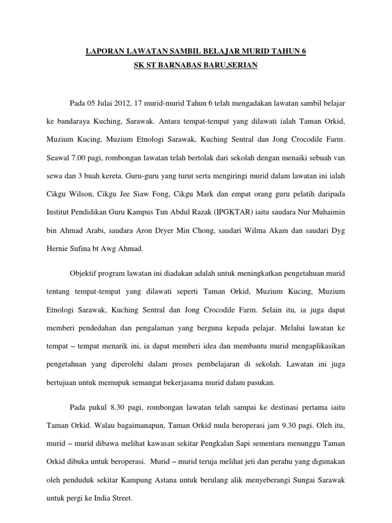 Laporan Lawatan Sambil Belajar Murid Tahun 6