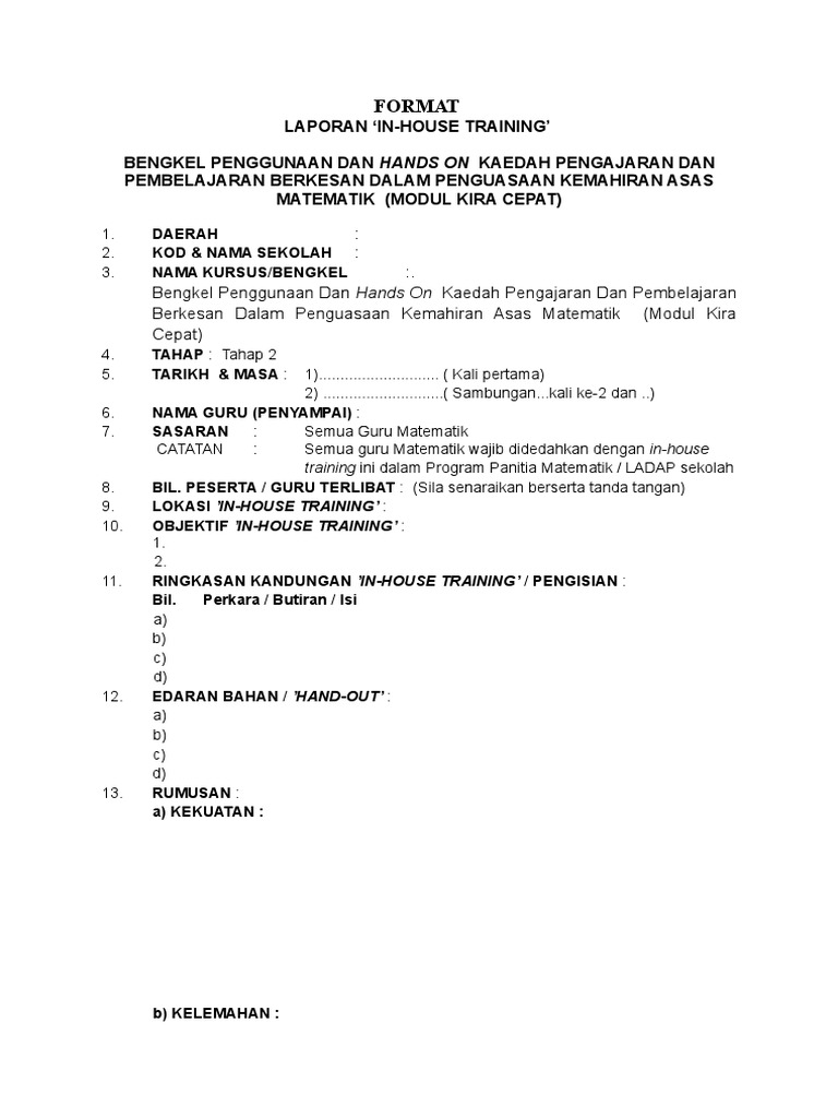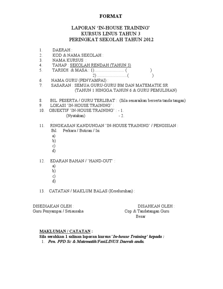 Doc Laporan In House Training Kursus Peringkat Sekolah Tahun Siti Hafisah Zakaria Academia Edu
