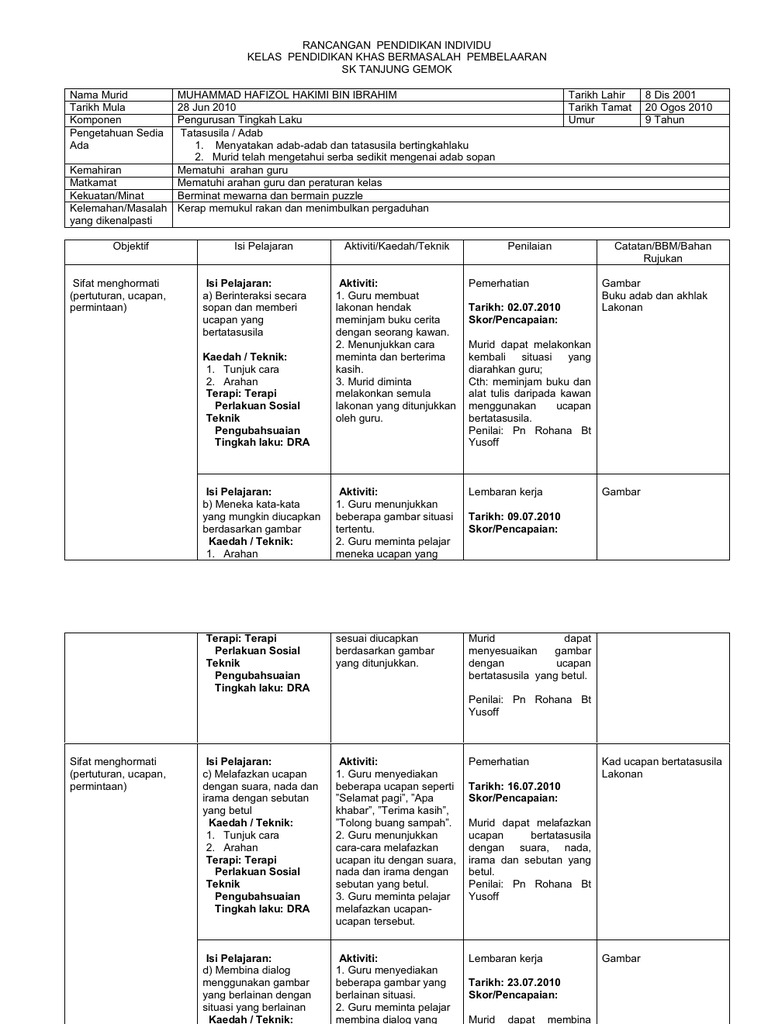 Contoh Rancangan Pengajaran Individu Pendidikan Khas Bahasa Malaysia Tahun 2 Kssr