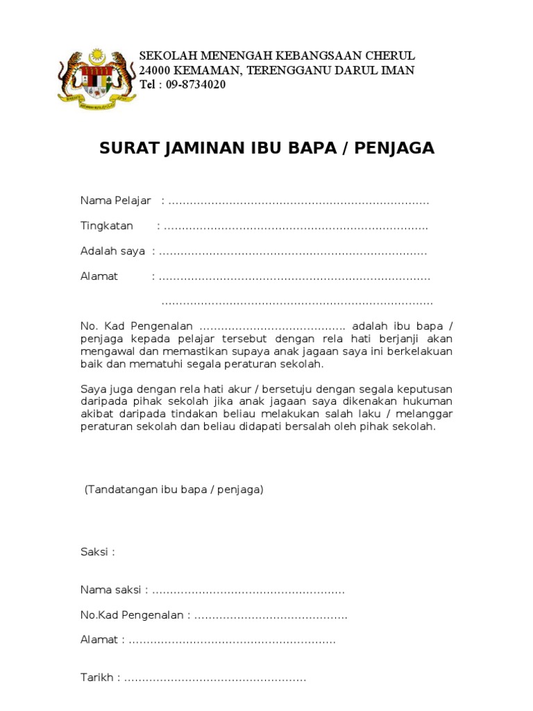 Contoh Surat Aku Janji Pelajar Sekolah Menengah