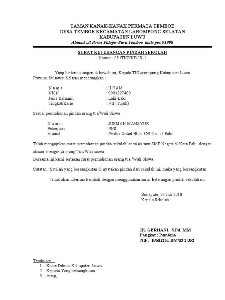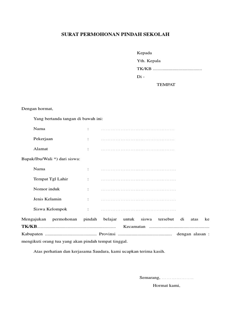 Contoh Surat Pindah Sekolah Paud Format Doc Sekolah Kurikulum Kepala Sekolah