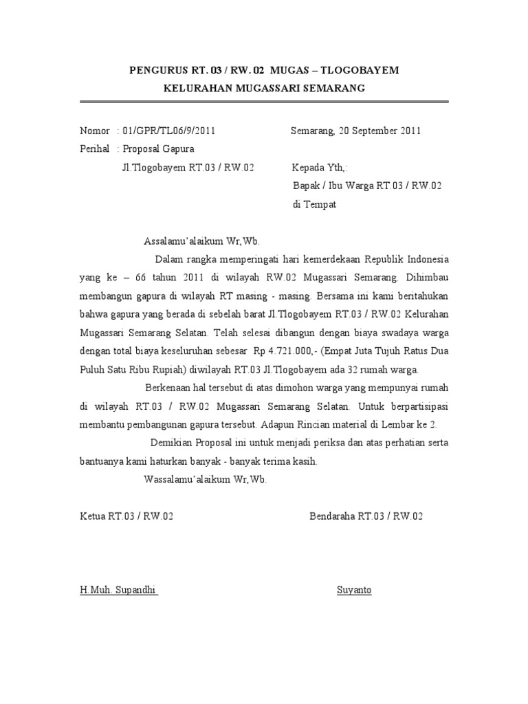Contoh Surat Permohonan Bantuan Dana Pembangunan Gapura