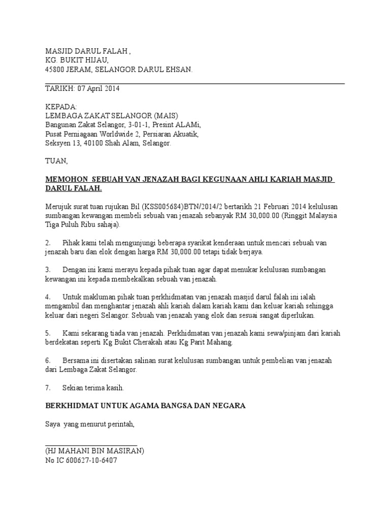 Contoh Surat Mohon Sumbangan Van Jenazah