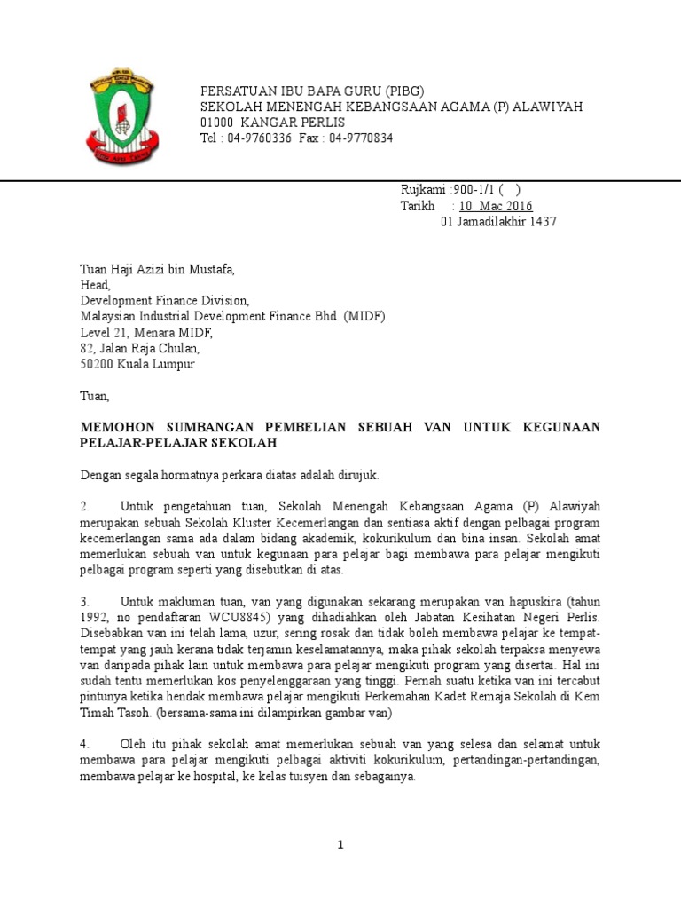 Contoh Surat Permohonan Sumbangan Van