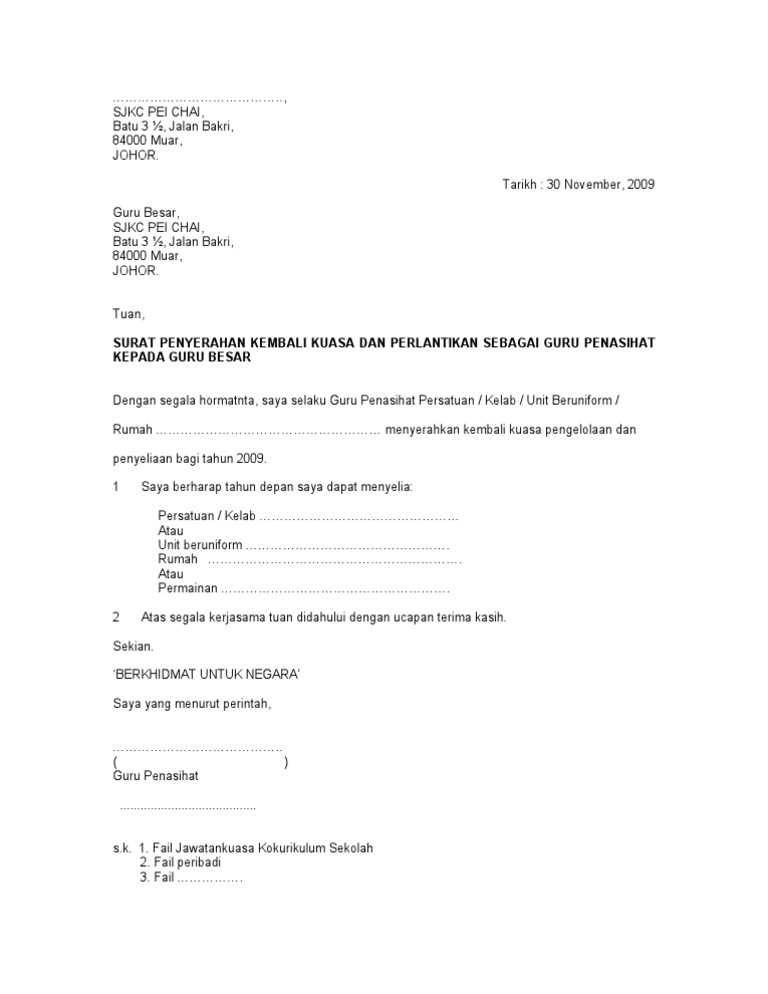 Lampiran 11 Contoh Surat Penurunan Kuasa Pengetua