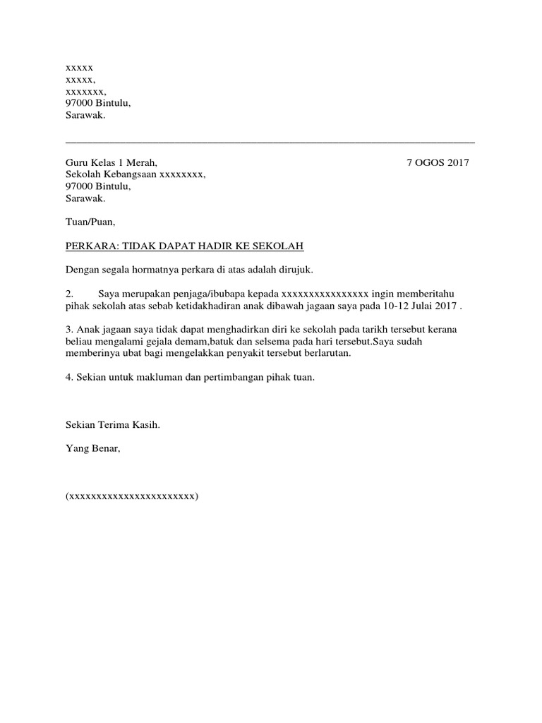 Karangan Jenis Surat Kiriman Rasmi Tidak Hadir Ke Sekolah 2