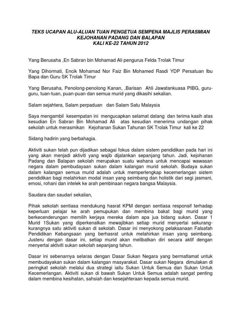 Doc Teks Ucapan Alu Aluan Juwita Abu Samah Academia Edu