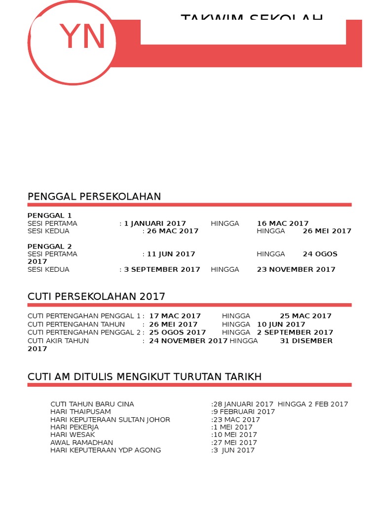 Penggal Sekolah Cuti Am 2017