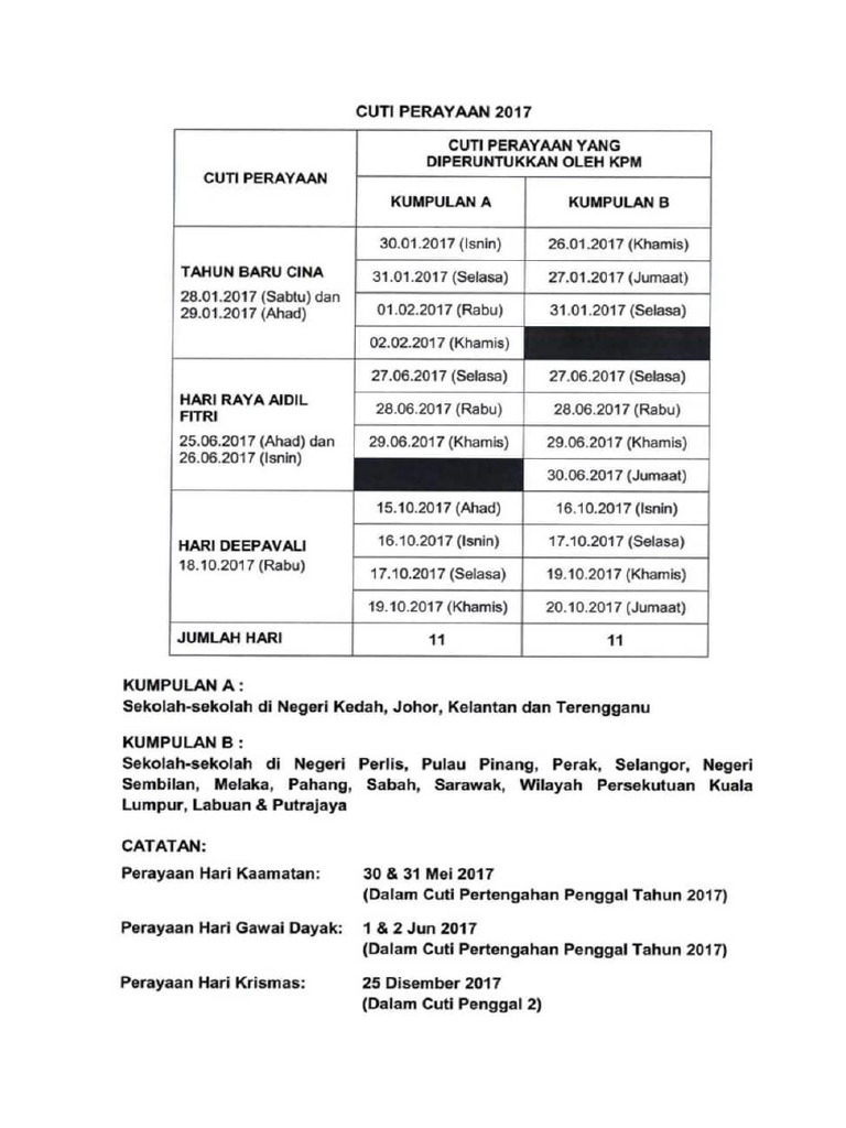 Jadual Tarikh Cuti Sekolah 2017 Kpm Malaysia Info Pelajar