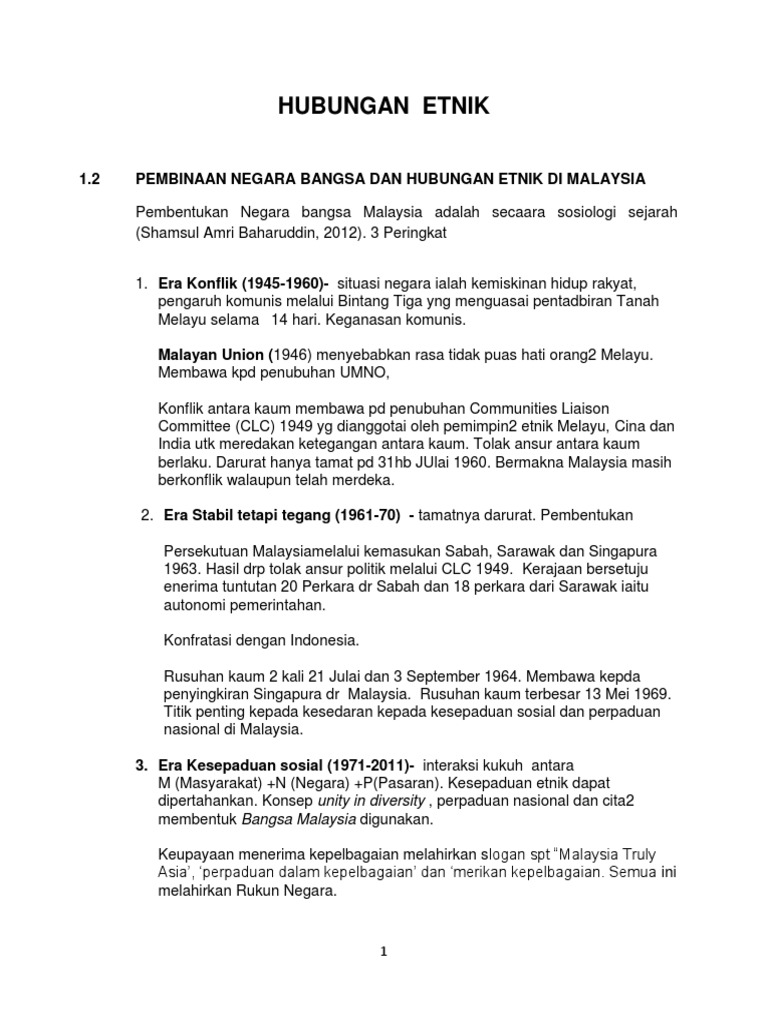Nota Ringkas Hubungan Etnik Iik Universiti Malaya Studocu
