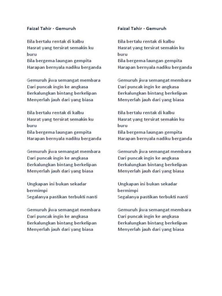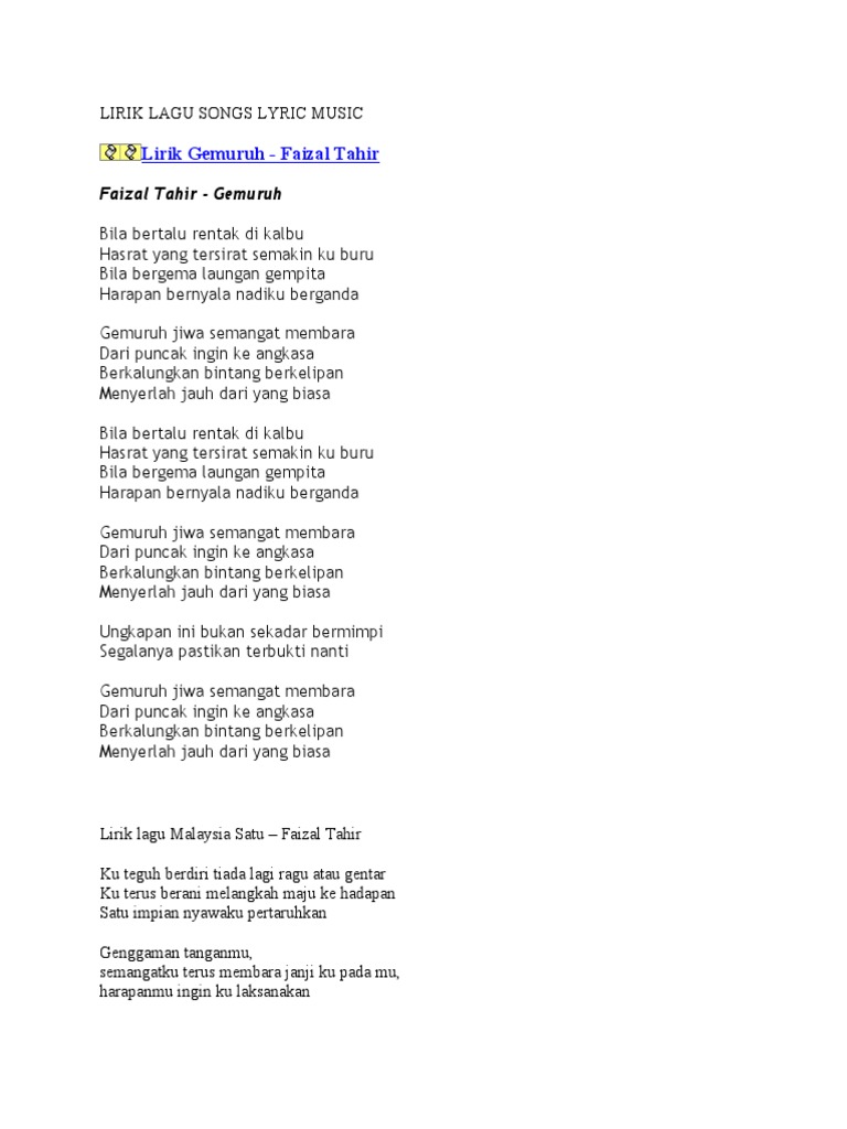 Faizal Tahir Choir Docx Faizal Tahir Gemuruh Bila Bertalu Rentak Di Kalbu Hasrat Yang Tersirat Semakin Ku Buru Bila Bergema Laungan Gempita Harapan Course Hero