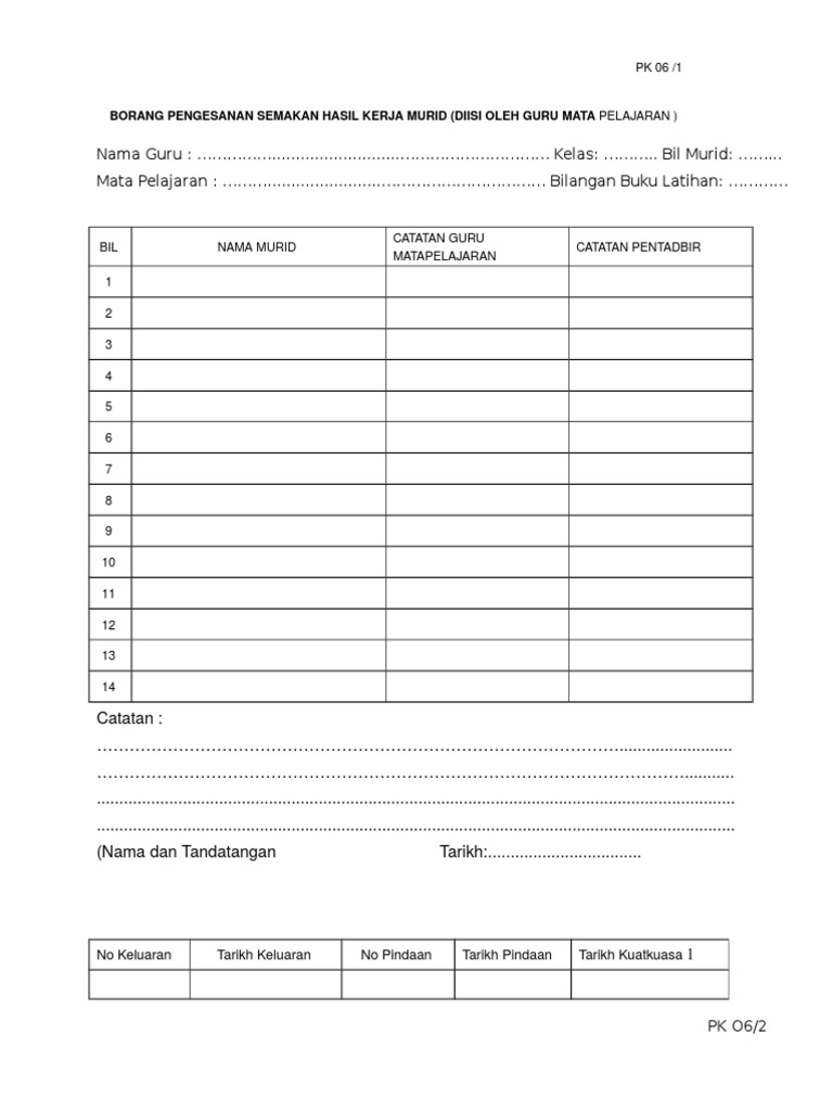 Borang Pk 06 1 Rekod Semakan Kerja Murid Edit