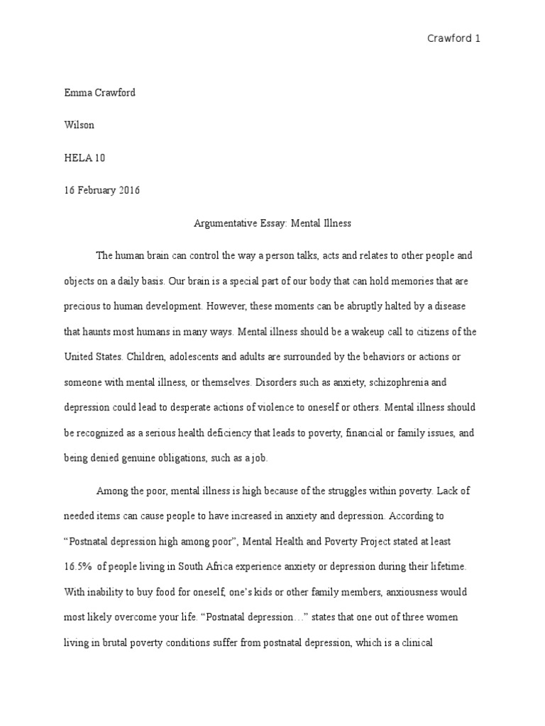 Final Draft Argumentative Essay Mental Disorder Suicide
