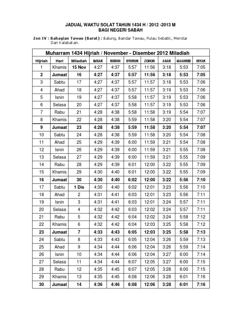 Xls Jadual Waktu Solat 1437 Seluruh Sabah Pusat Islam Ums Academia Edu