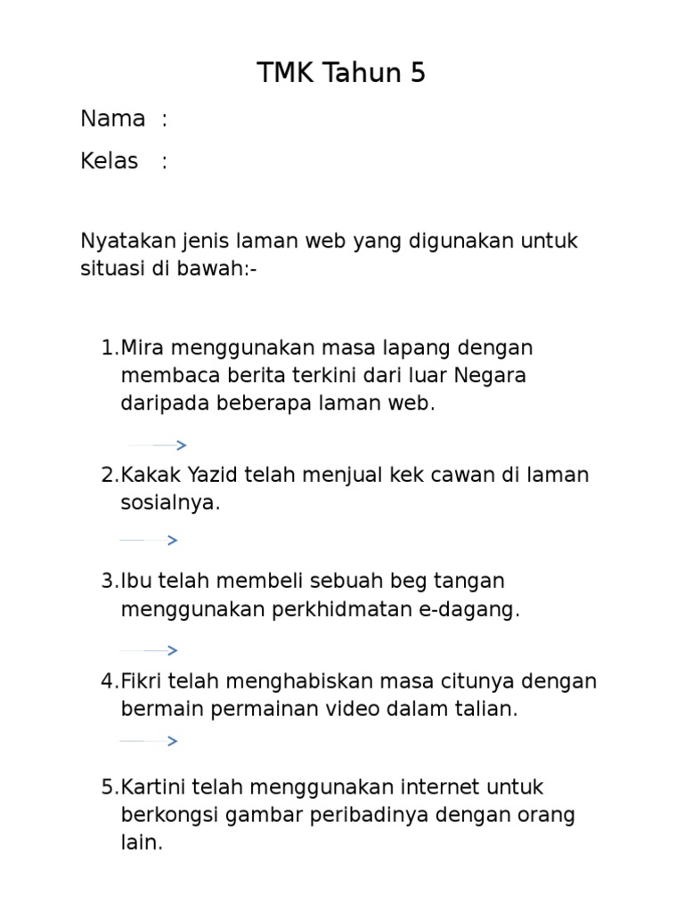 Tmk Tahun 5 Latihan Jenis Laman Web