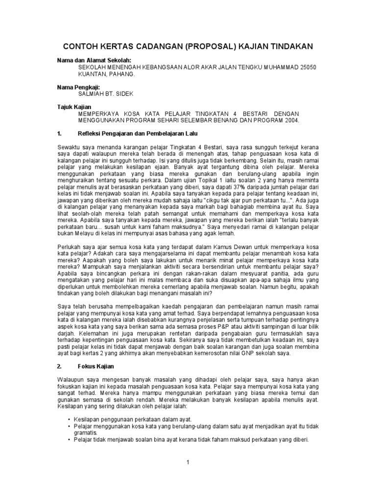 Pdf Kertas Cadangan Proposal Kajian Tindakan Ben Lau Academia Edu