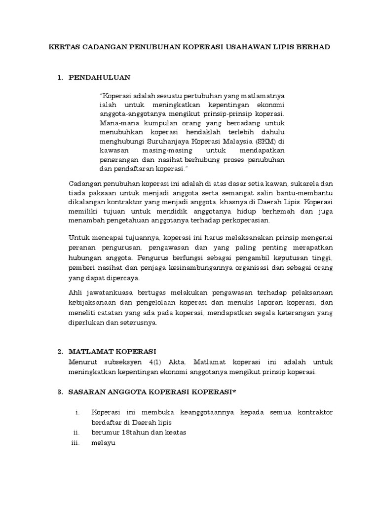 Doc Kertas Cadangan Penubuhan Koperasi Fawziah Yahya Academia Edu