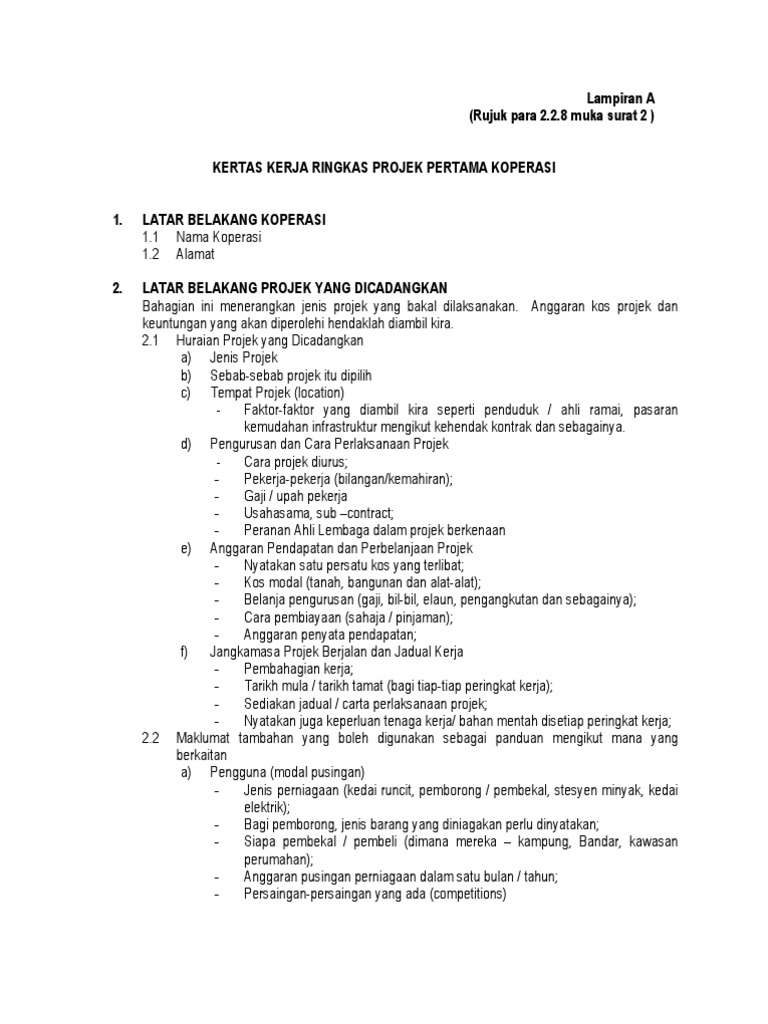 Doc Kertas Cadangan Penubuhan Koperasi Simpan Pok Jak Salleh Academia Edu