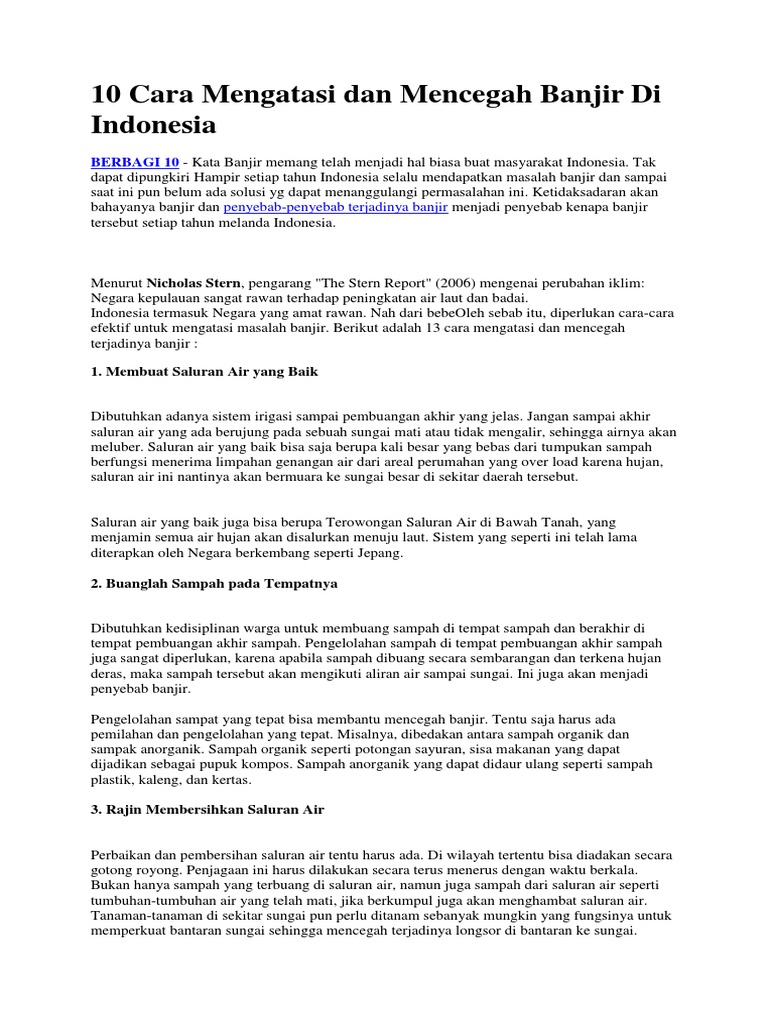 10 Cara Mengatasi Dan Mencegah Banjir Di Indonesia