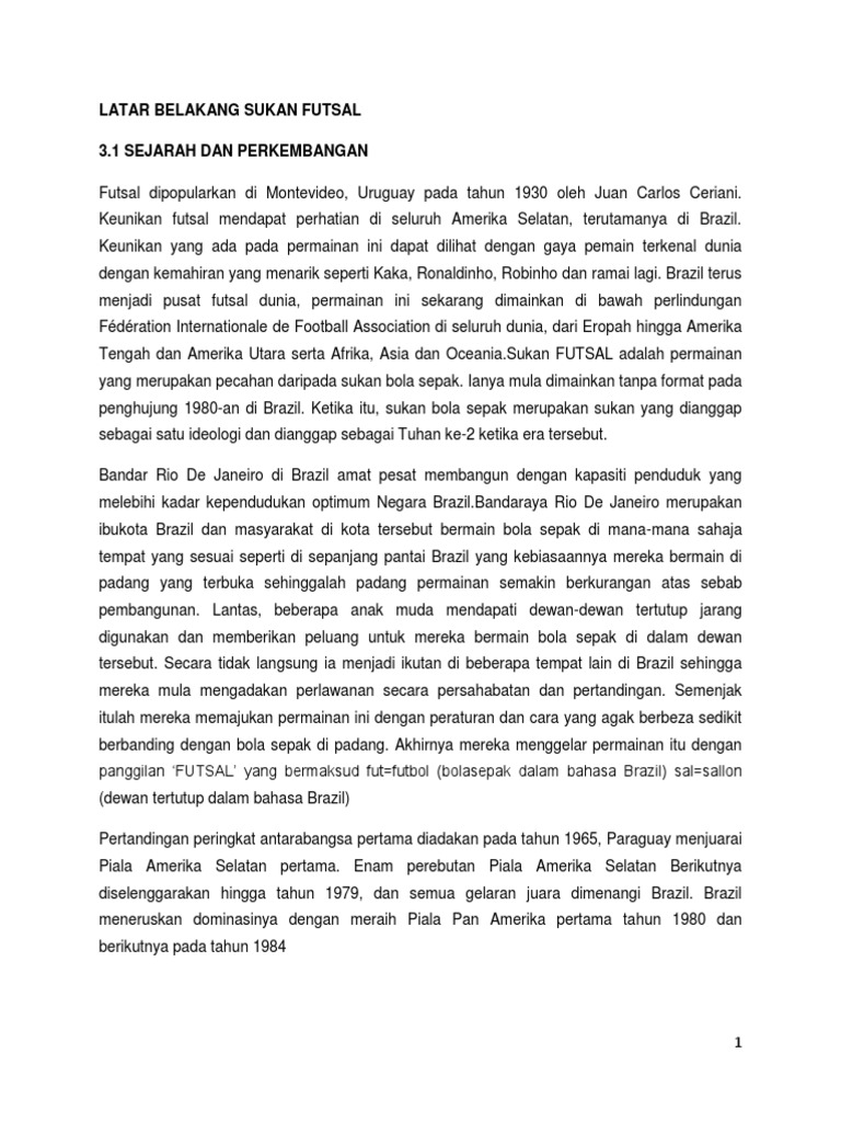 Latar Belakang Sukan Futsal