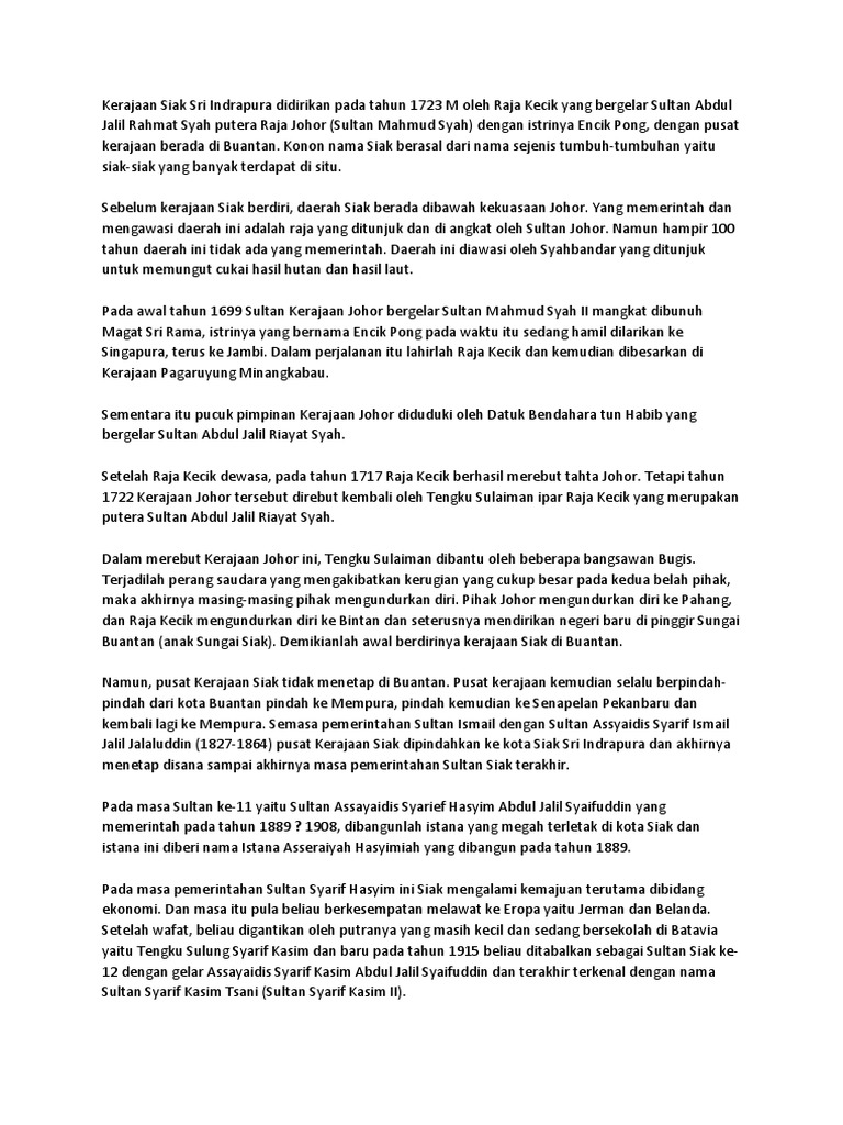 Latar Belakang Kerajaan Siak