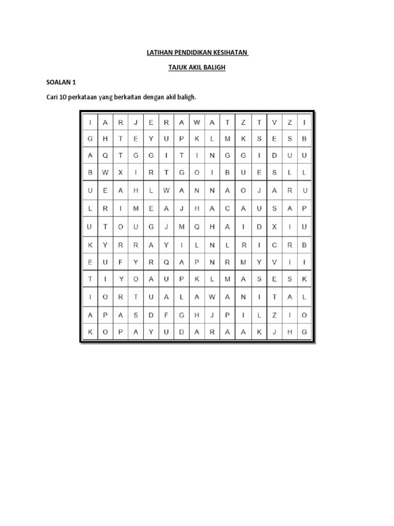 Latihan Pendidikan Kesihatan Tahun 4 Akil Baligh