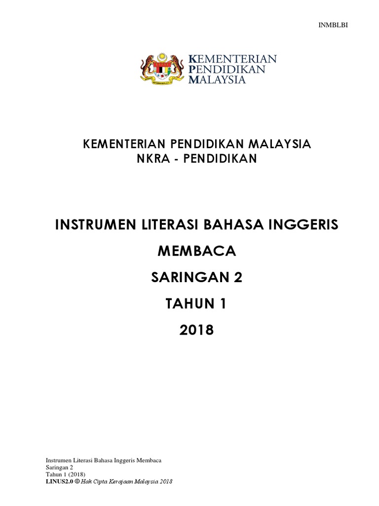 Pdf 1 Instrumen Saringan Membaca Literasi B Inggeris Nurul Izzati Academia Edu