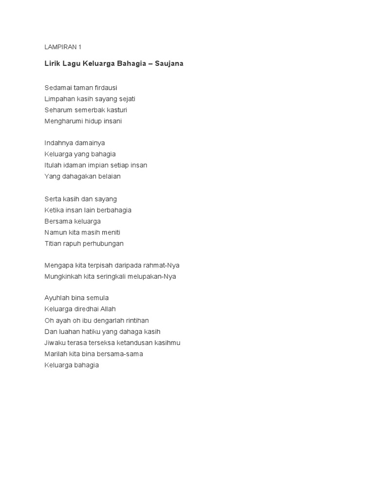 2015 Pdfآ Permulaan Lirik Lagu Keluarga Bahagia Lppkn Ini Menggambarkan Nilai Nilai Murni Yang Diamalkan Pdf Document