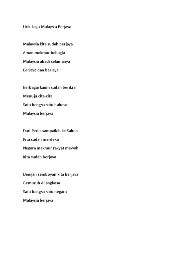 Lirik Lagu Malaysia Berjaya Lagu Patriotik