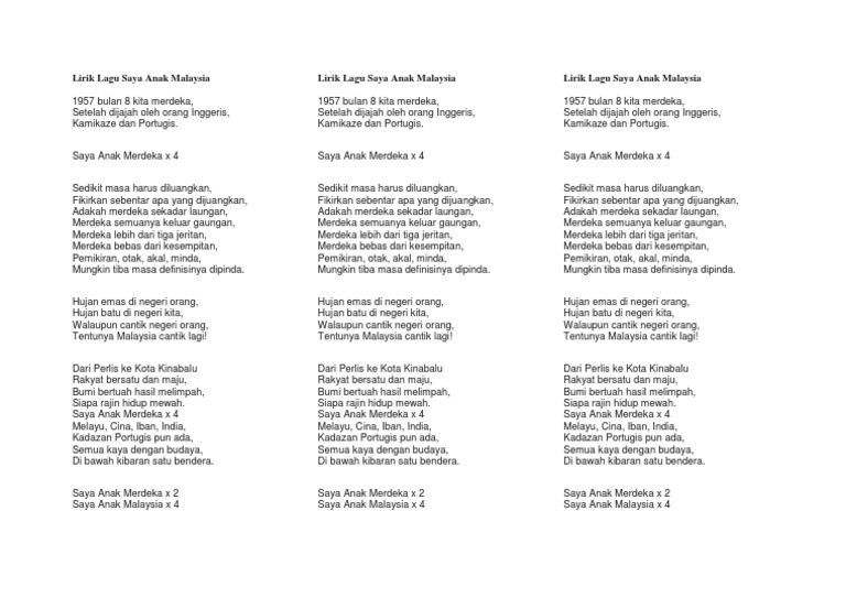 Documents Tips Lirik Lagu Saya Anak Malaysia