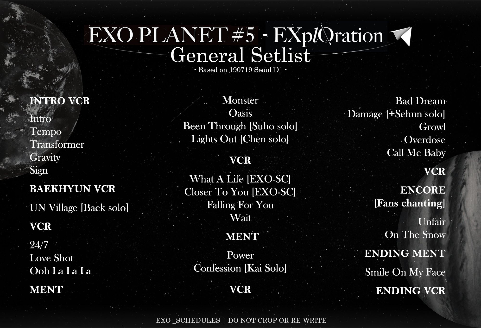 Exo Schedule On Twitter Exo Planet 5 Exploration Setlist Set List Based On 190719 Seoul D1 Exo Exo Planet Exploration Explorationinseoul Weareoneexo Https T Co Rhsufmpfyu