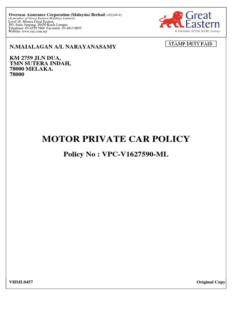 Fillable Online Great Eastern General Insurance Malaysia Berhad 102249 P Fax Email Print Pdffiller