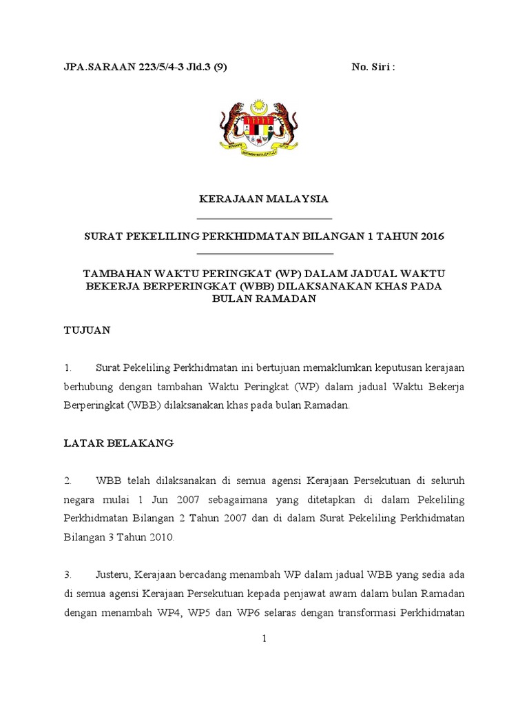 Surat Pekeliling Perkhidmatan Bil 1 2016 Pdf