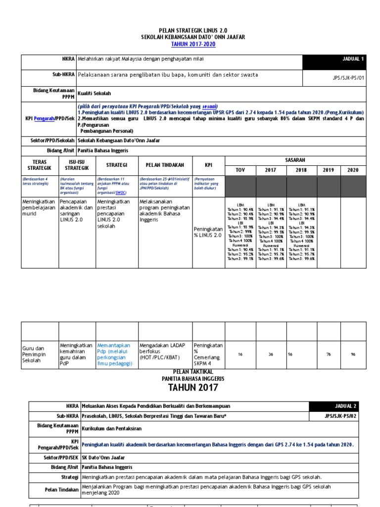 Pelan Strategik Panitia Bahasa Inggeris Taktikal Dan Operasi 2017 Docx