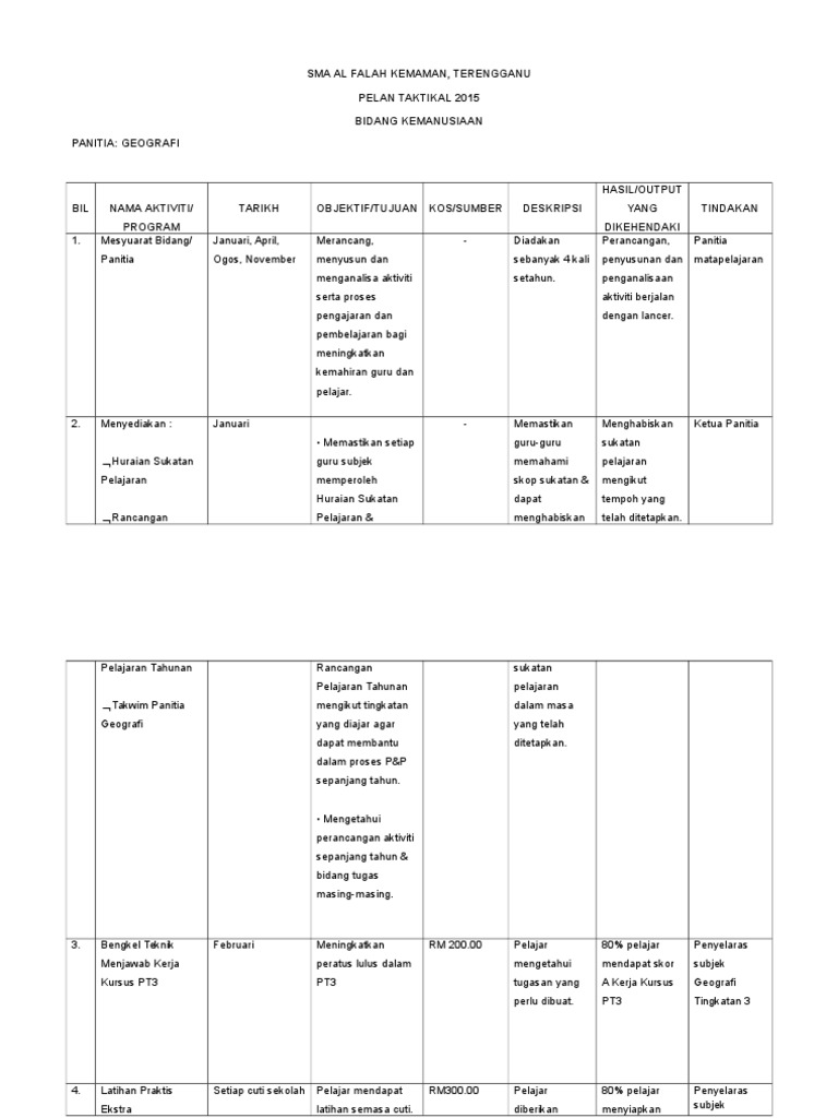 Pelan Taktikal Dan Operasi Panitia Geografi 2015