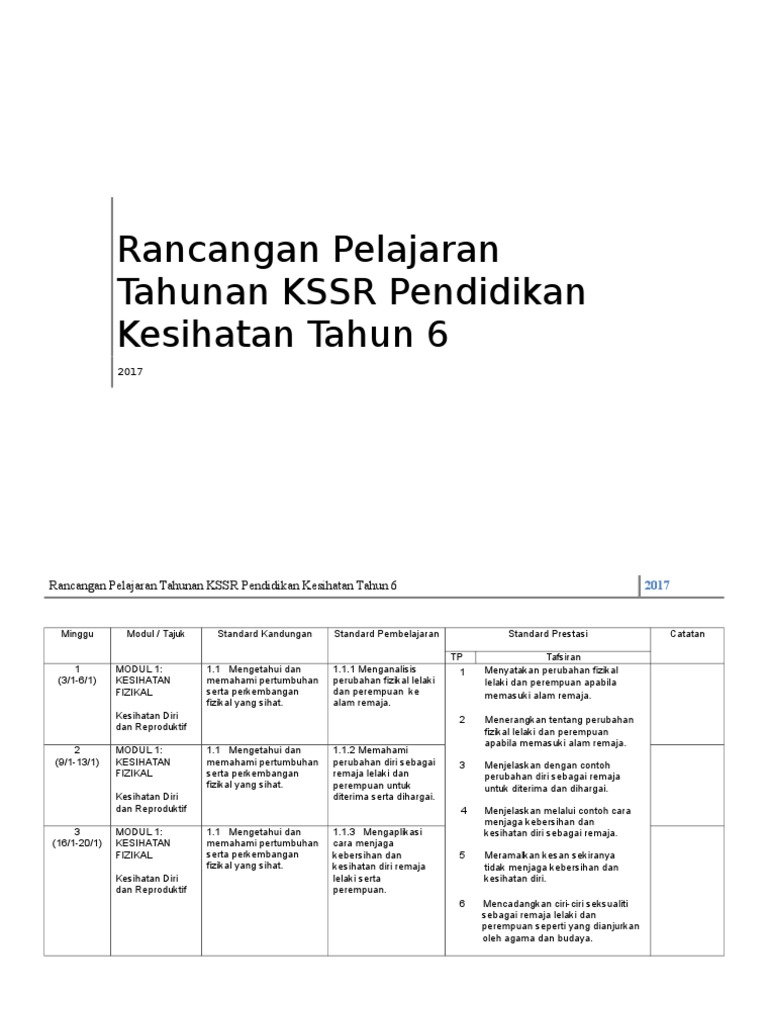 Dskp Kssr Pendidikan Kesihatan Tahun 6