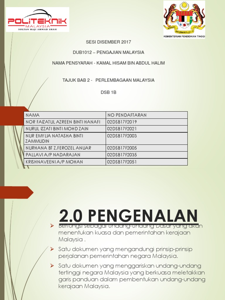 Bab 2 Perlembagaan Malaysia 120517 Pptx Mpu 2163 Pengajian Malaysia 2 Bab 2 Perlembagaan Malaysia 1 Keluhuran Perlembagaan 2 Peruntukan Utama Course Hero