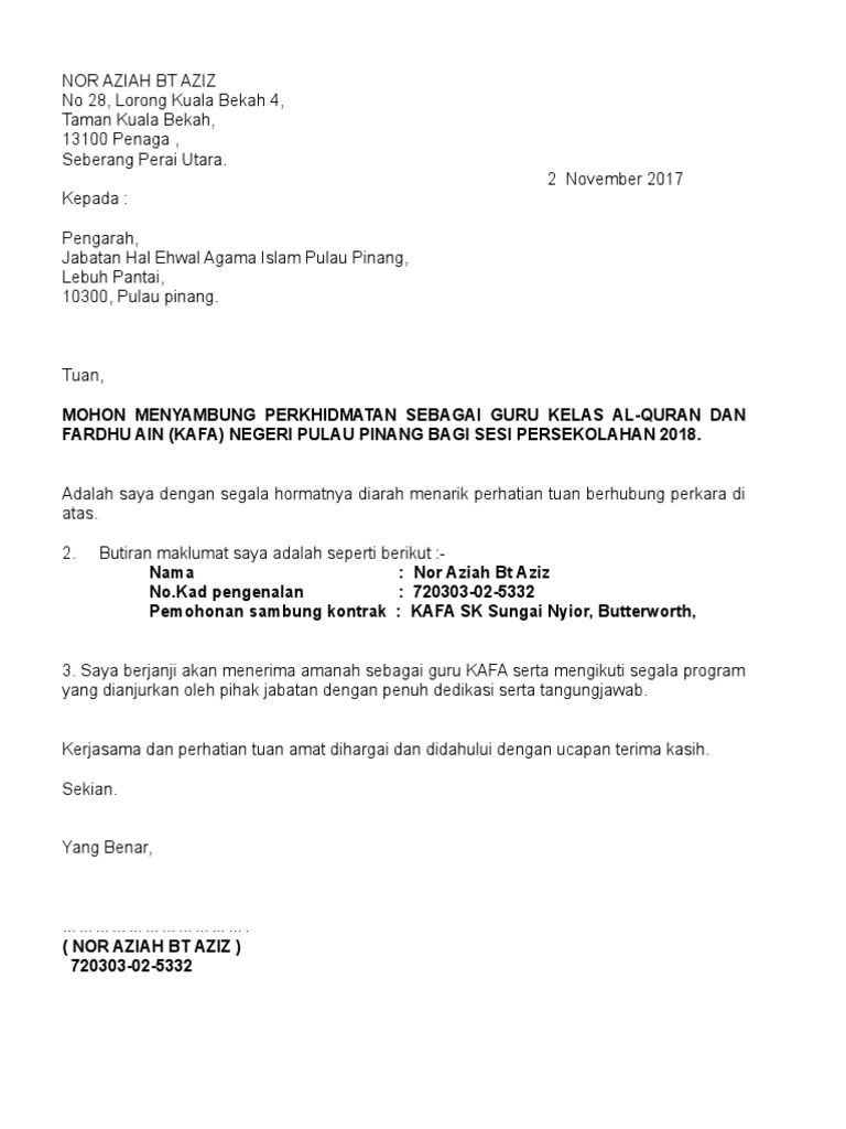 Contoh Surat Rasmi Permohonan Sambung Kontrak Kerja Rasmi Ri