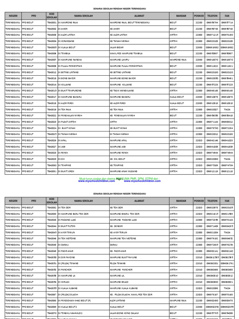 Terengganumenengah30jun13 Wm Pdf Senarai Sekolah Menengah Negeri Terengganu Negeri Ppd Kod Sekolah Nama Sekolah Alamat Bandar Poskod Telefon Fax Course Hero