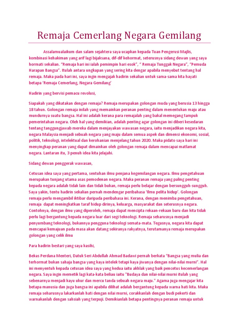 Teks Pidato Remaja Berwawasan Aspirasi Negara