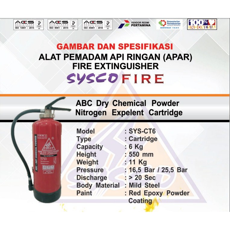 Apar 6kg Dry Chemical Powder Nitrogen Expelent Catridge Shopee Indonesia