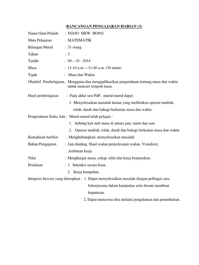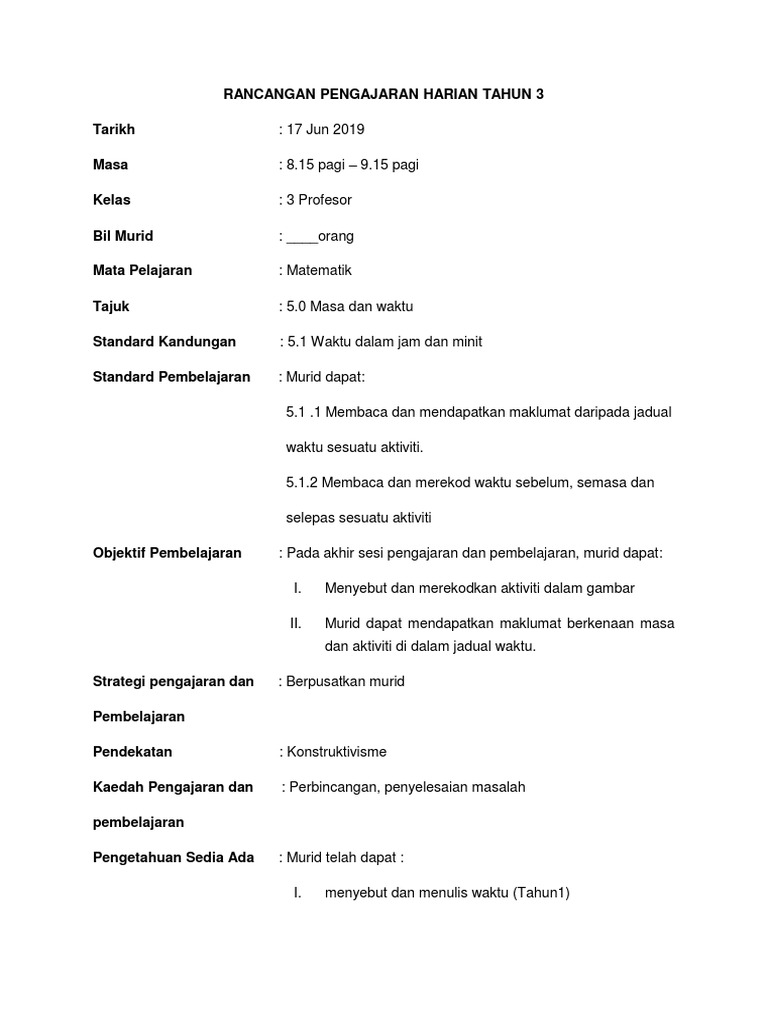 Rph Masa Dan Waktu Tahun 3 Docx