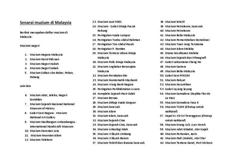 Doc Senarai Muzium Di Malaysia Nabilah Ai Academia Edu