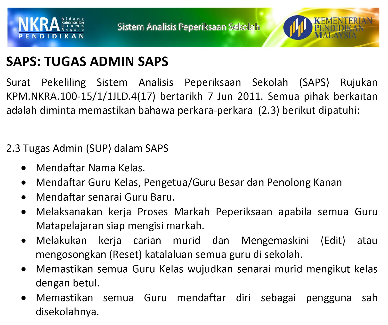 Senarai Tugas Pentadbir Sekolah