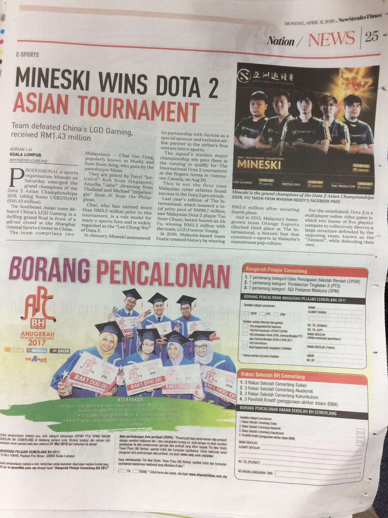 Reddit Dota 2 On Twitter Mineski Makes The Local Newspaper Https T Co Rgd5ysftad Dota2