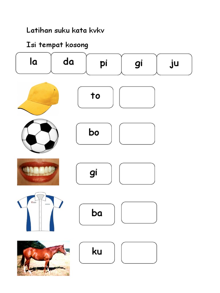 Suku Kata Kvkvk Latihan Bahasa Melayu Tahun 1
